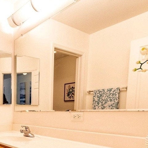 The light wrap was super easy to put up and it hides the bulbs and makes the bathroom look so much nicer!